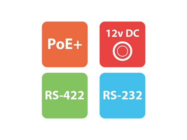 Lumens VC-A61P supports both PoE (Power over Ethernet) and a 12v DC input. It also features dedicated RS-232 in-out ports, RS-422, and Ethernet-based control protocol support (including Crestron, Extron, Visca, Pelco D, FreeD, and Onvif). This gives the camera an unparalleled level of flexibility: whatever the video workflow, whatever the AV integration, VC-A61P is ready to take the complexity out of camera installation and management.